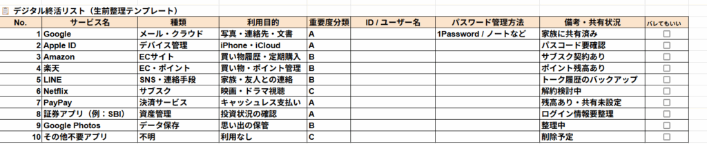 後半では『実際に整理すべきデジタル資産100リスト』をカテゴリ別にご紹介します。
