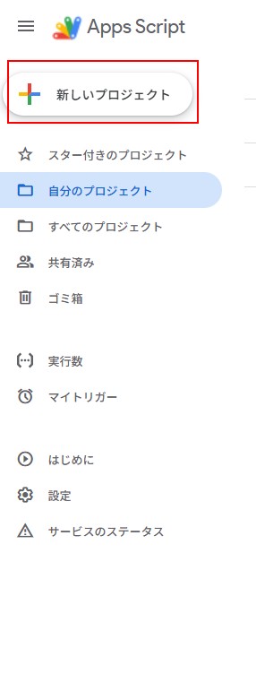 - ログイン後、画面左上にある「新しいプロジェクト」ボタンをクリックします。