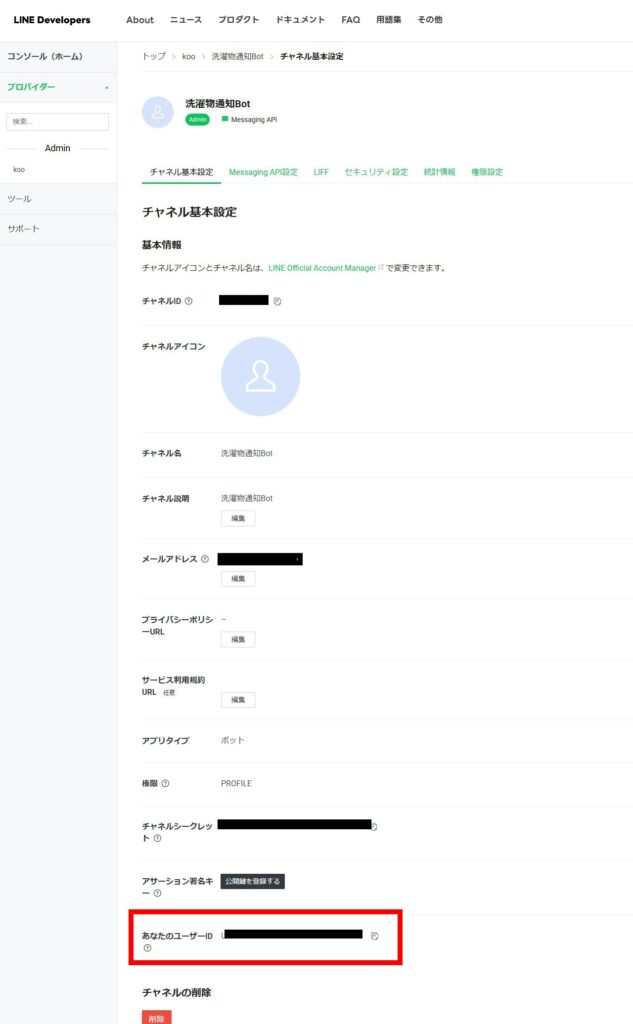 Botからあなた自身にメッセージを送るには、あなたのLINEアカウントを特定するためのIDが必要です。これがUser IDです。