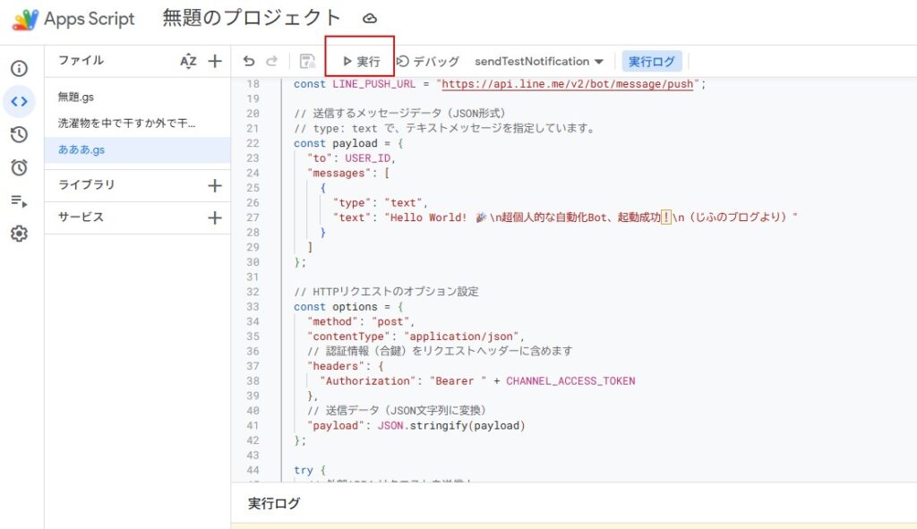 Logger.log("✅ 通知が成功しました。LINEを確認してください!");